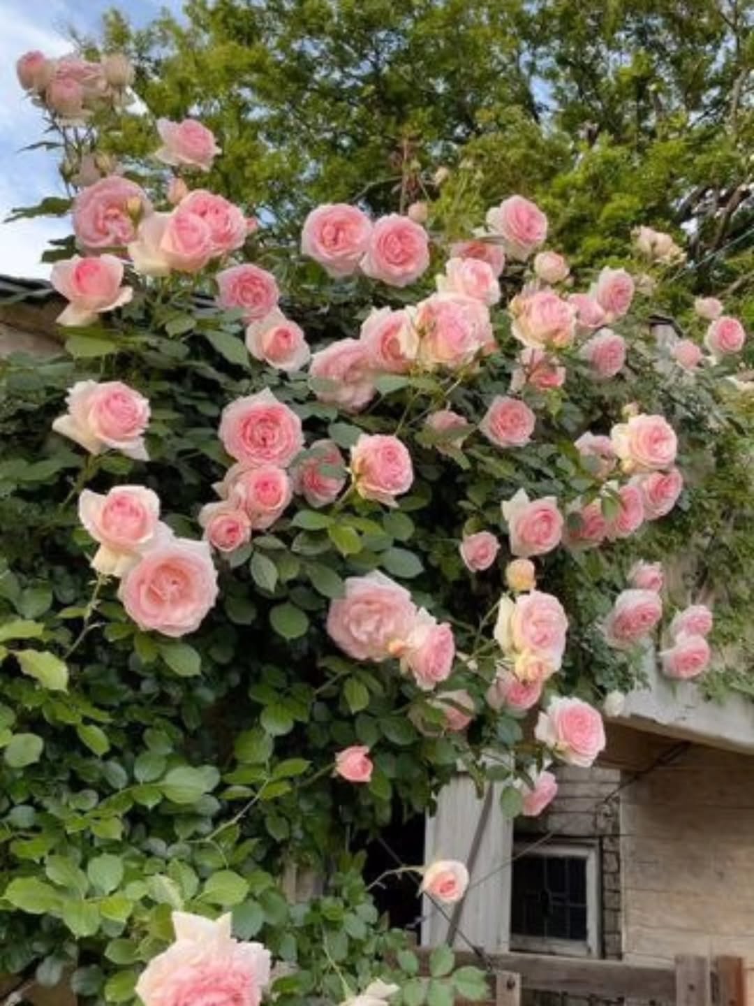 Один из самых популярных сортов плетистых роз. Крупные махровые цветки нежно-розового цвета с кремовым центром. Высота до 3м. Повторное цветение.
